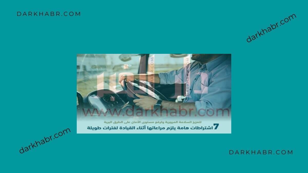 أعلنت الهيئة العامة للنقل بالمملكة العربية السعودية عن أبرز اشتراطات القيادة لفترات طويلة للعمل على تحسين مستوى السلامة المرورية في كافة الأنحاء، بهدف تعزيز مستوى الأمن والأمان للمواطنين من خلال الطرقات البرية والسفر لمسافات طويلة، وقد حرصت الهيئة أيضا على تدشين لوائح وقوانين للحد من المخالفات المرورية والحفاظ على الأرواح، وقد جددت التذكير بأهمية الالتزام بالقوانين من خلال حسابها الرسمي على تويتر.
