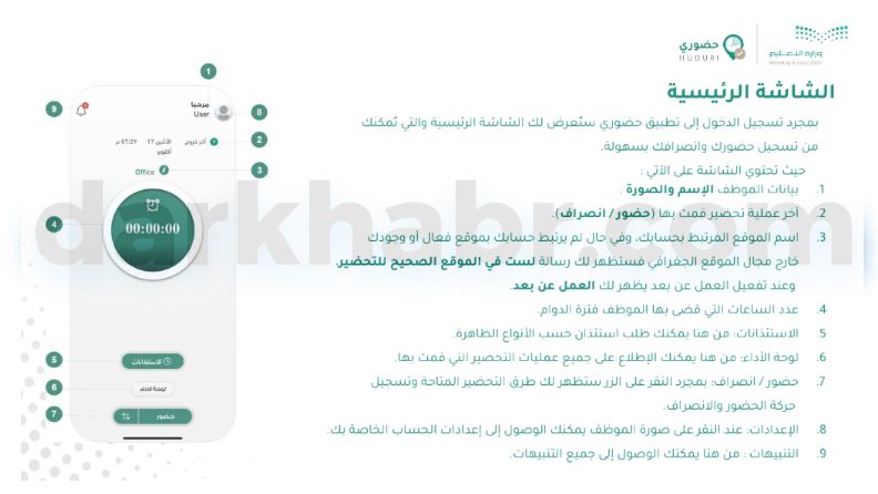 ألية استخدام خدمة حضوري لتسجيل حضور وانصراف الموظفين يتم كما يالي: