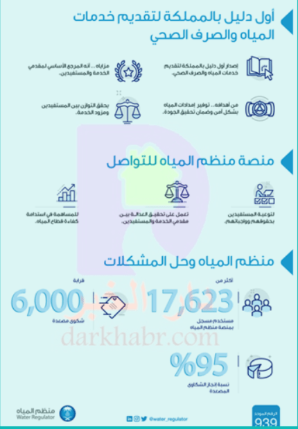 رقم منظم المياه لخدمة العملاء هو 939 يمكن التواصل من خلاله للاستعلام وإرسال الشكاوى.