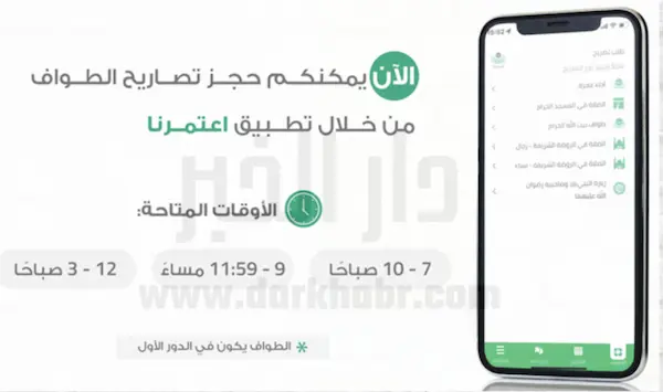 أوضحت وزارة الحج أمه يمكن حجز تصاريح الطواف من خلال خدمة تطبيقها الإلكتروني الرسمي “اعتمرنا”، عبر اتباع الخطوات المُبينة أدناة.